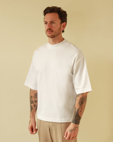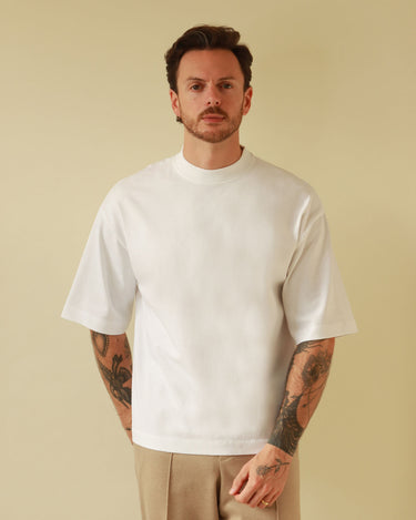 White mid-weight t-shirt with signature details.